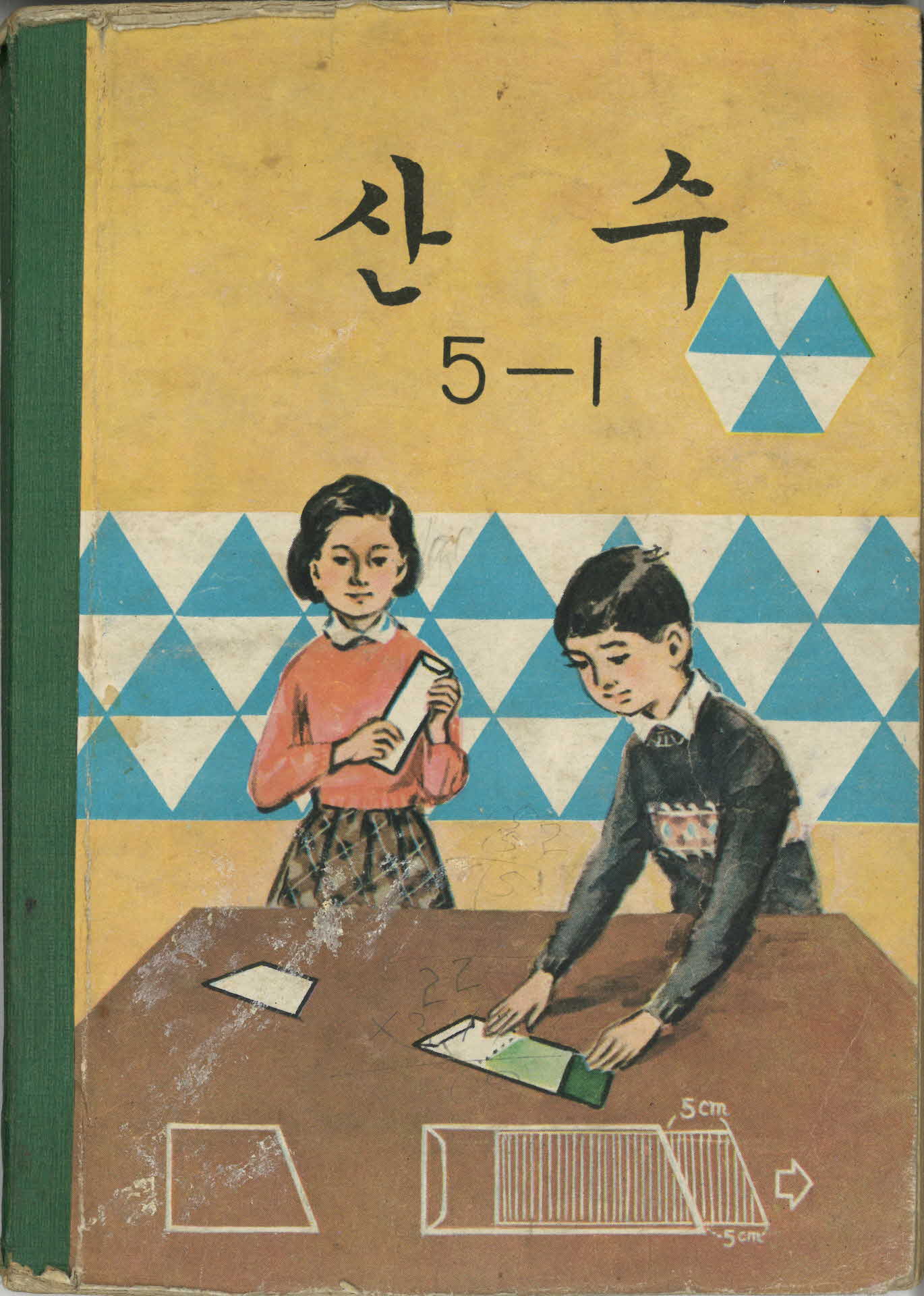 이 5학년 1학기 『산수』 교과서는 제2차 교육과정기(1963.2.∼1973.2.)에 발간된 교과서로 문교부에서 짓고, 국정 교과서 주식회사에서 1970년 3월 1일 펴냈다. 책 뒷면에는 5학년 3반 최순화라 기록되어 있다.