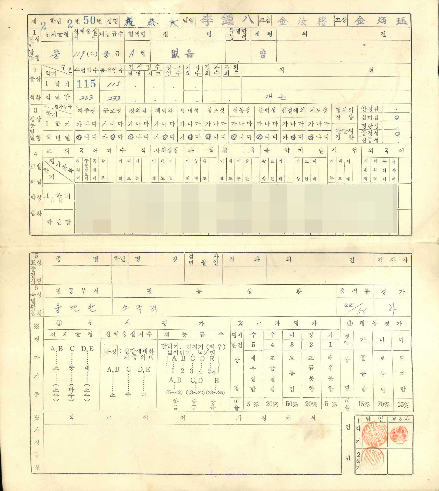 1962년도 영주중학교가 발급한 생활기록통지표이다. 4면 구성의 통지표 2면과 3면에 영주중학교 2학년생의 신체발달 상황, 출석 상황, 행동발달 상황, 교과학습 발달 상황, 표준검사 상황, 특별활동 상황, 평가기준, 가정통신 등이 기재되어 있다. 1960년대 전반기 중학교 교육 상황에 대해 파악할 수 있는 기록물이다.
