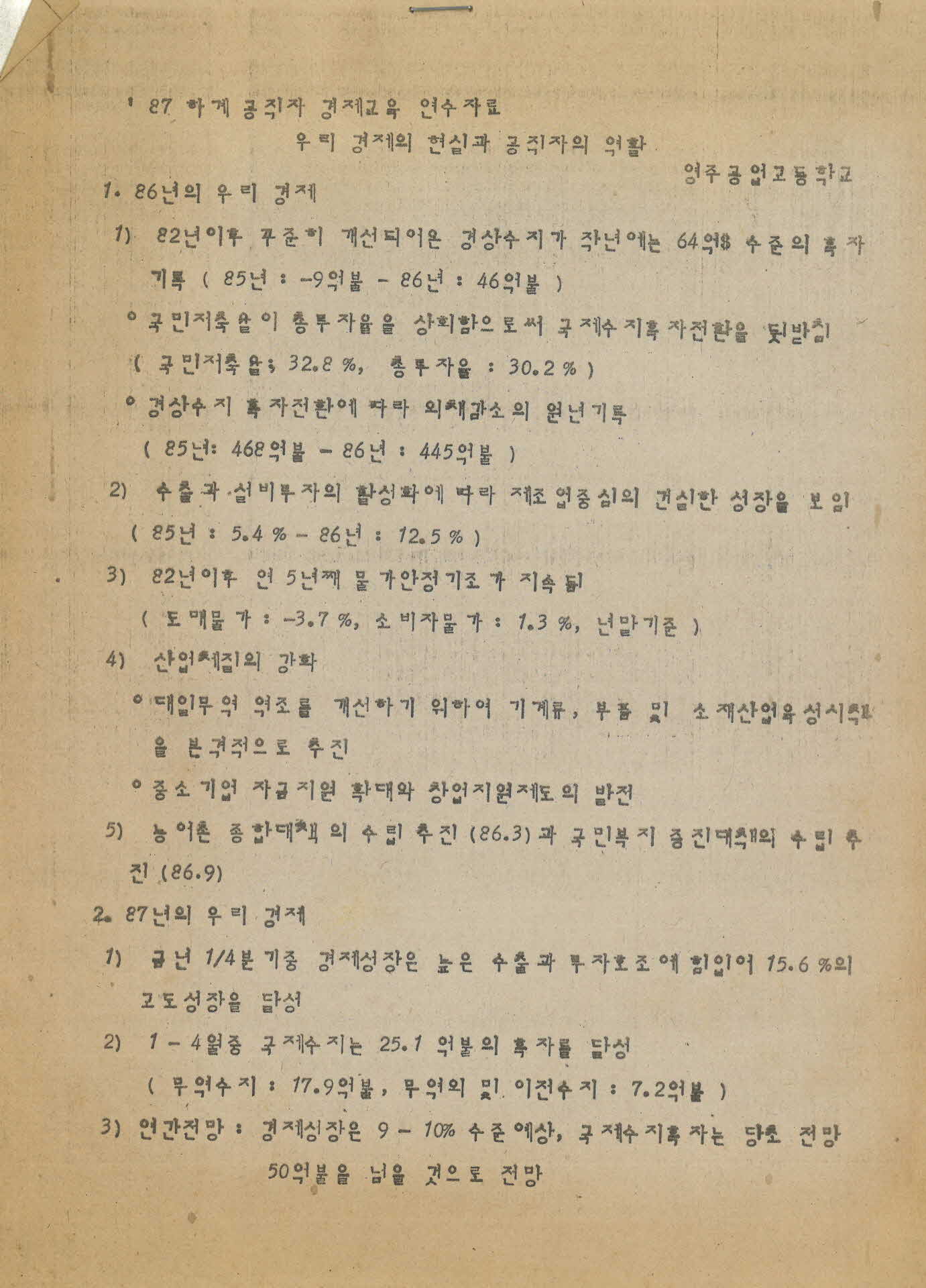 영주공고 '87 하계 공직자 경제교육 연수 자료
