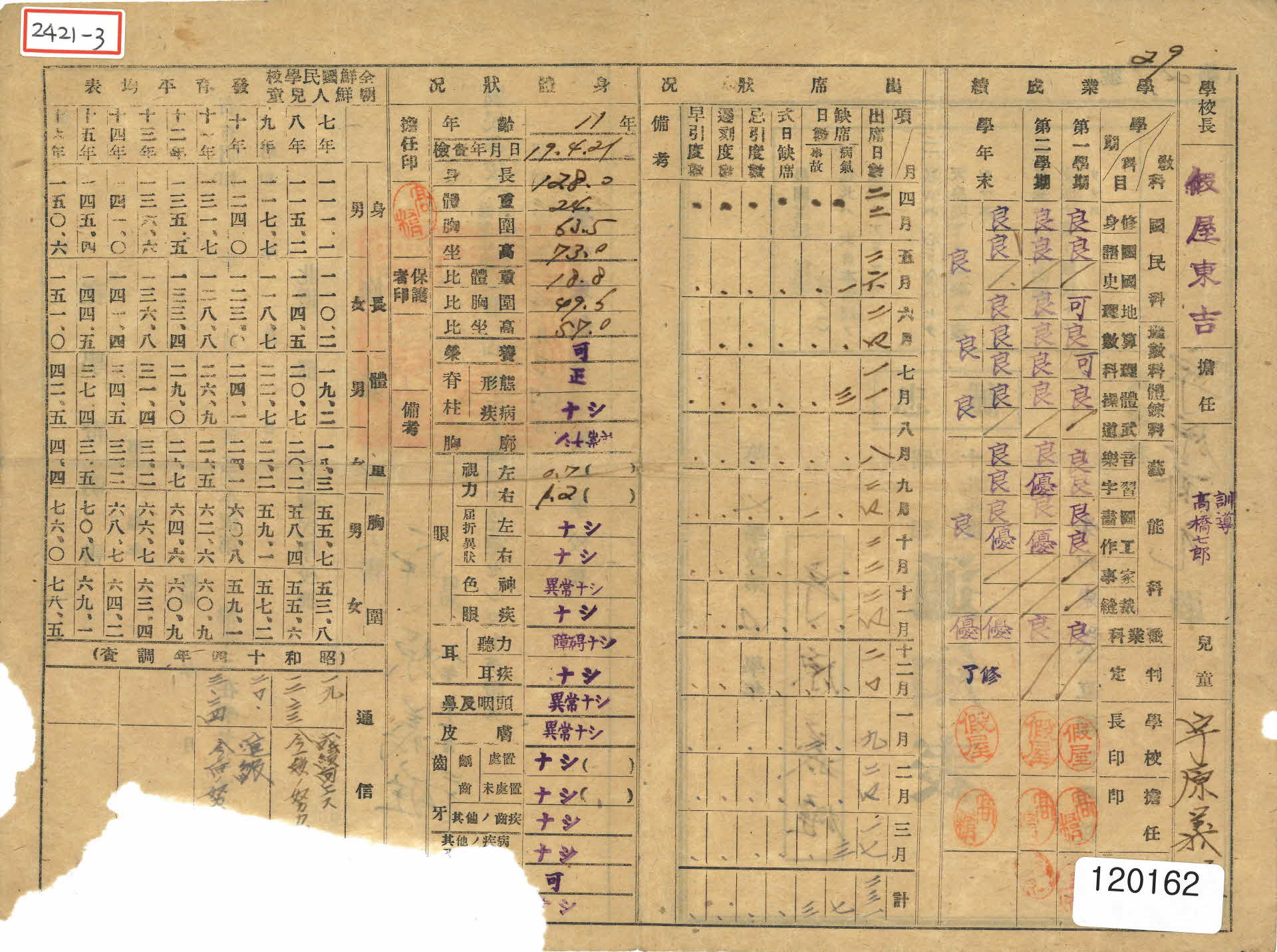동부국립국민학교 송의웅 통신표