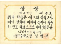 영주중학교 성적 우수 상장