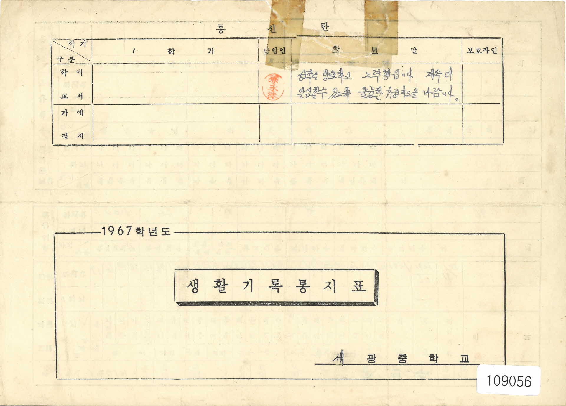 | 기록물명 | 1967학년도 세광중학교 생활기록통지표 | ||