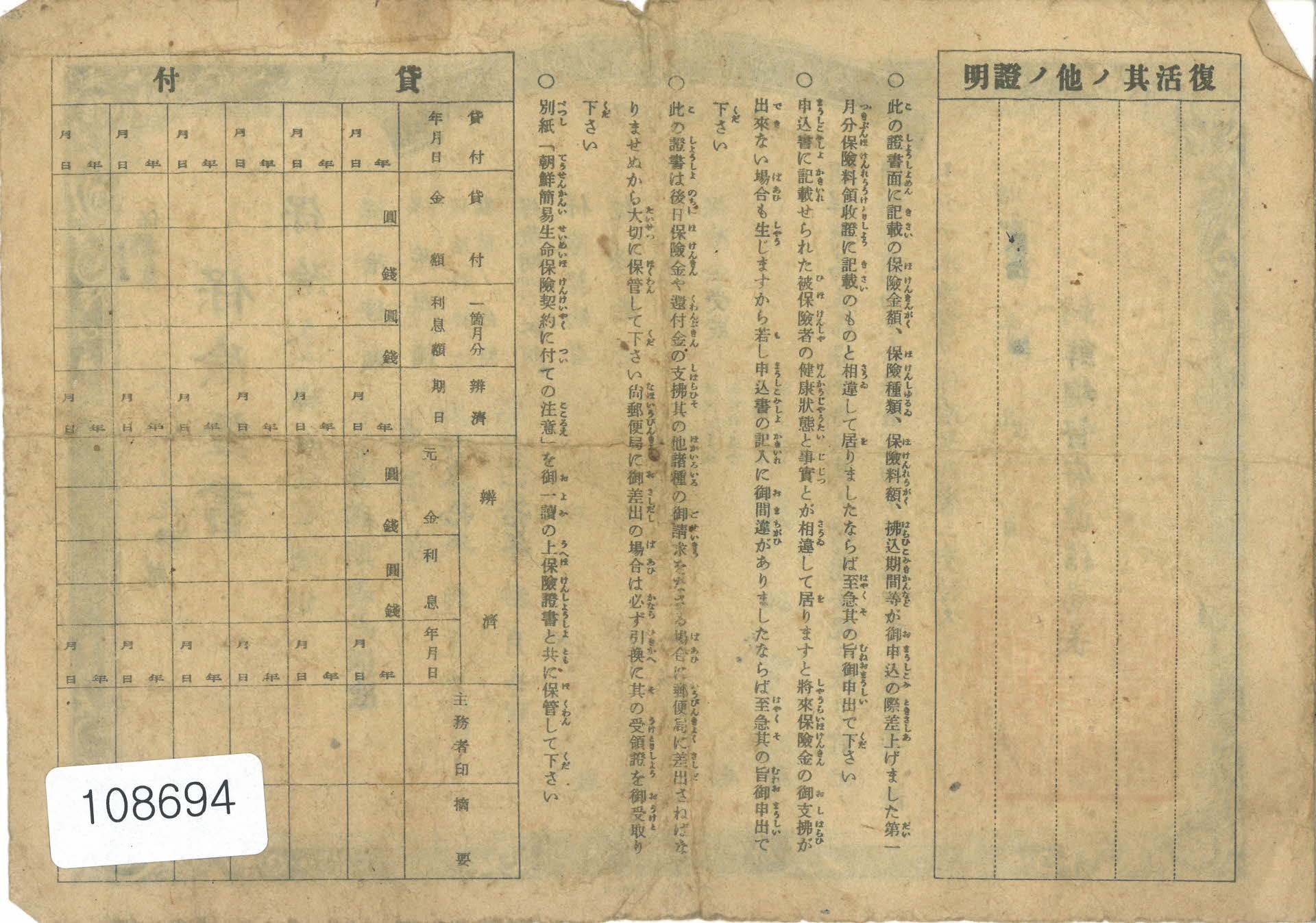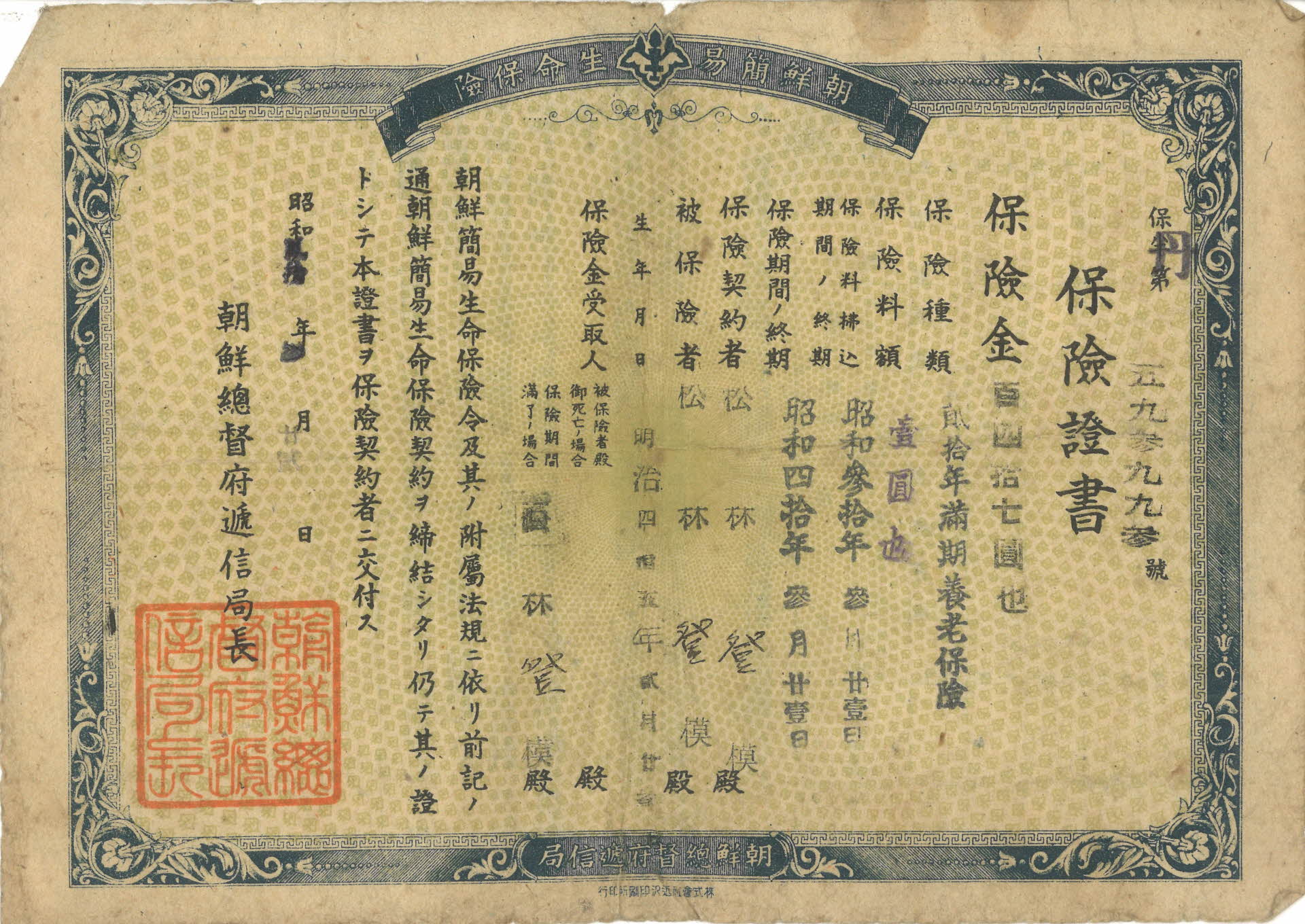 | 기록물명 | 보험증서/조선총독부 체신국 | ||
