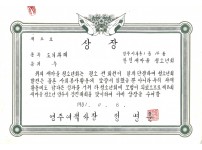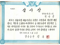 박승건 통일쌀 집단재배단지육성 표창장