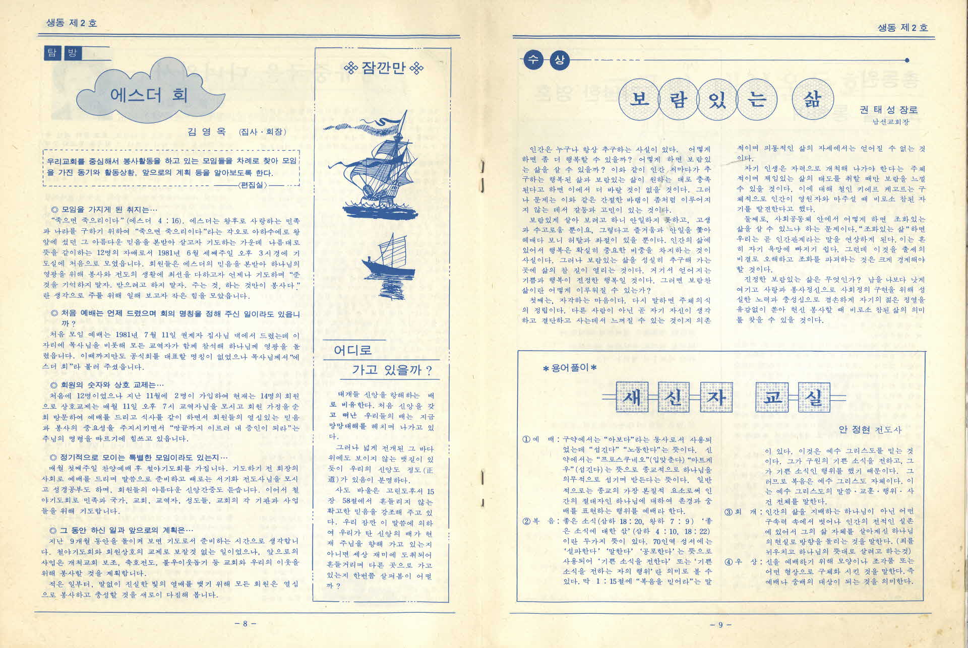 『생동』 제2호는 1982년 5월 1일 편집인 남선교회, 발행인 권용평으로 하여 발행되었다.