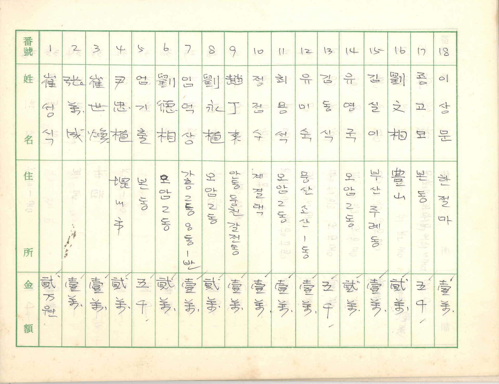 11면에 걸쳐 196명의 축하객 이름과 주소 그리고 축의금 내역이 기록되어 있다.