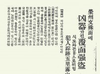 영주 문수면에 흉기(凶器) 가진 복면강도(覆而强盜) 식도와 곤봉으로 위협, 범인종족오리무중(犯人踪跡五里霧中)