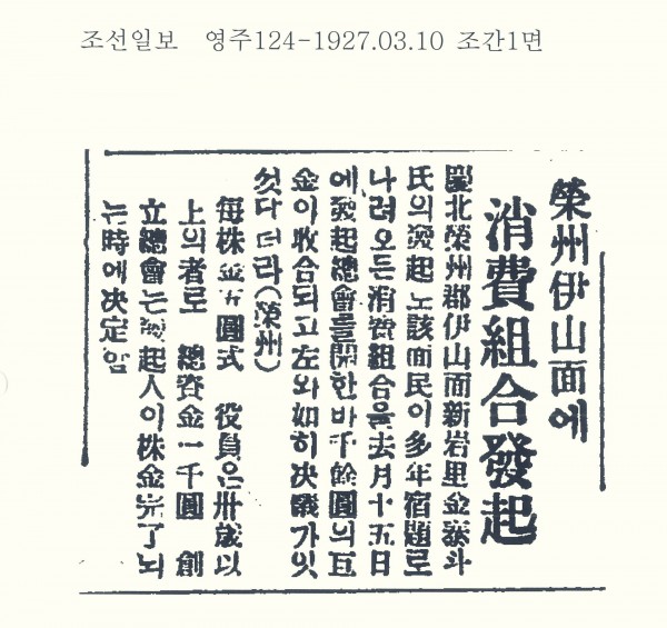 영주 이산면에 소비조합발기(消費組合發起) > 언론에서 본 영주