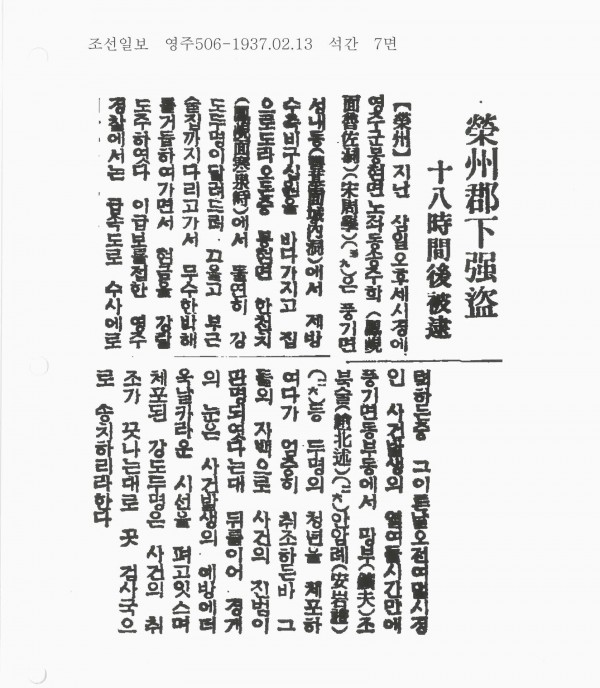 영주 군하(郡下) 강도(强盜) 18시간후 피체(被逮) > 언론에서 본 영주