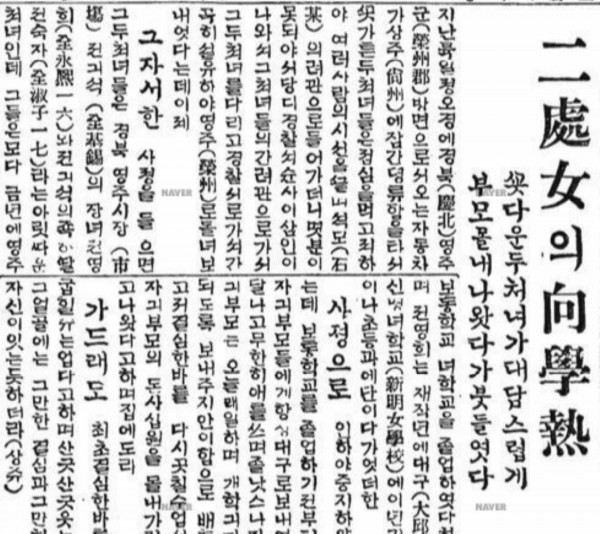 이처녀의 향학열