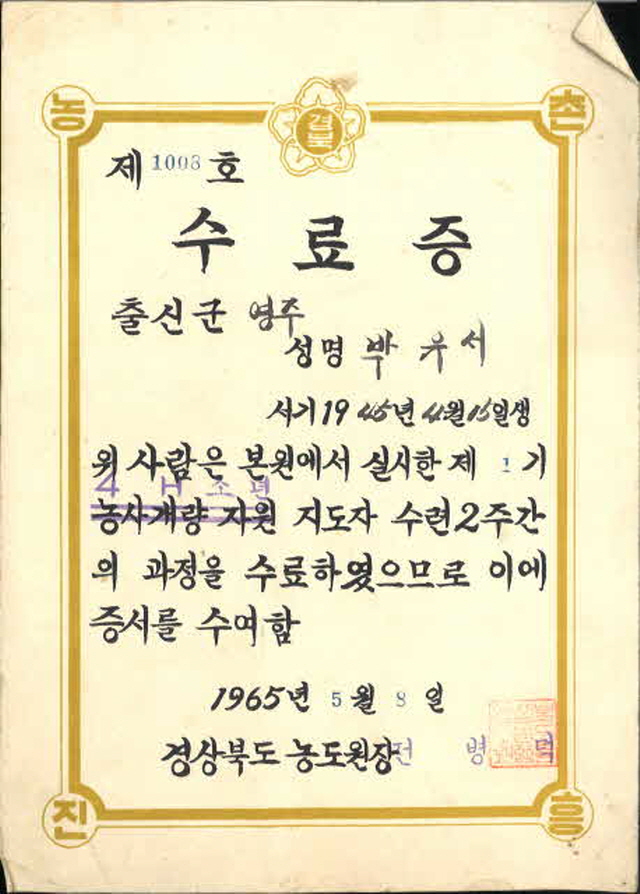 경북 농도원장 4H소년 지도자 수료증 등 18점