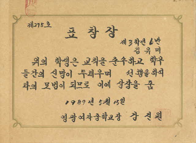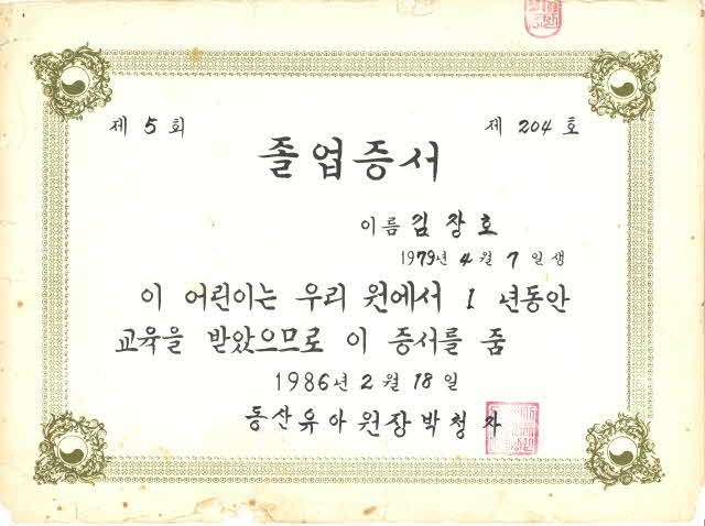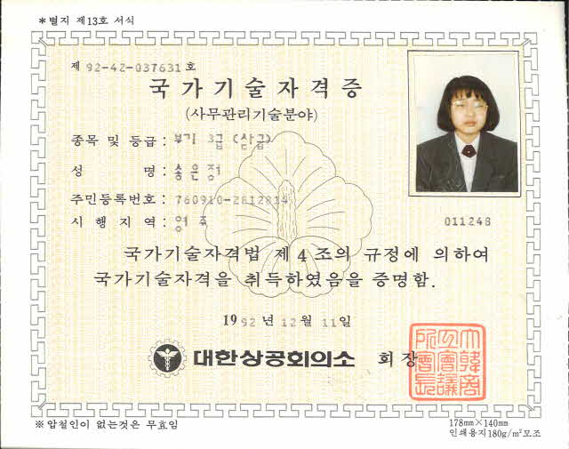 1985년 동산여상 부기 4급 검정 합격증 등 4점