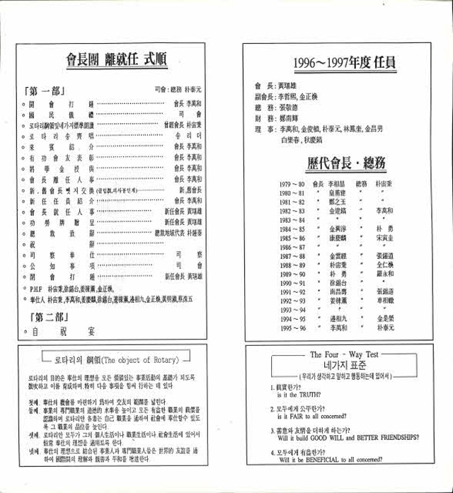 1996~1997년도 제17-18대 회장단 이취임식 팜프렛 등 12점