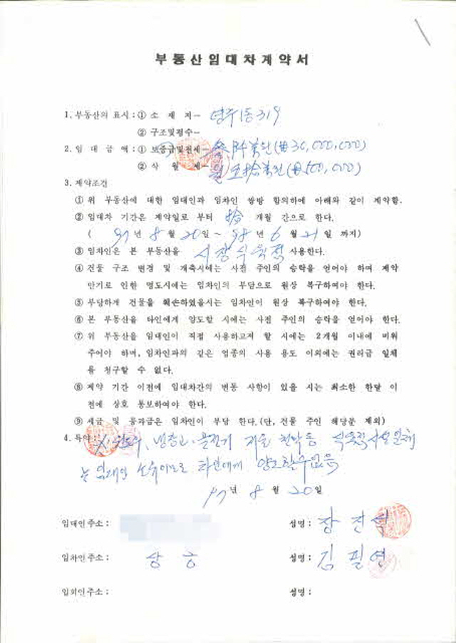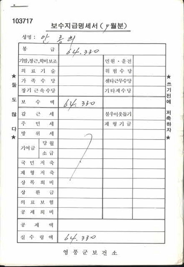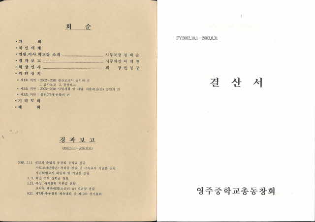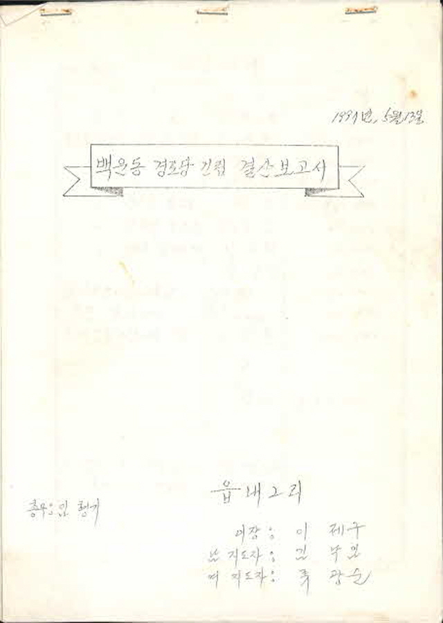 1997년 백운동 경로당 건립 결산보고서 등 1점