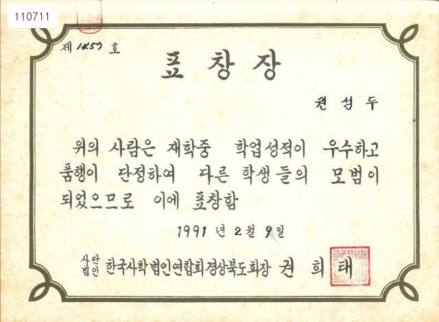 제2회 영주청년회의소 사생대회 입선 상장 등 6점
