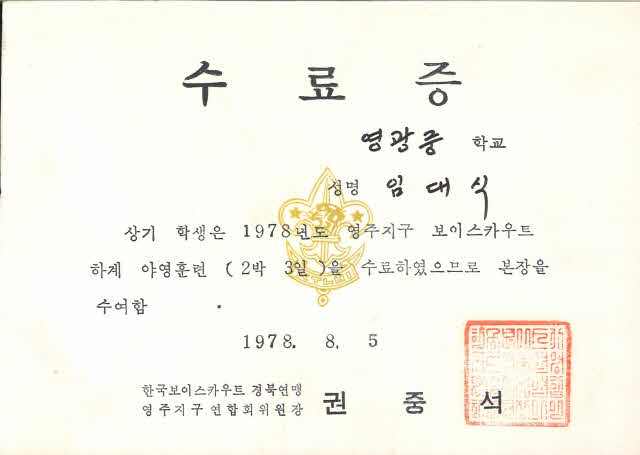 영주지구 보이스카우트 하계야영훈련 수료증 등 64점