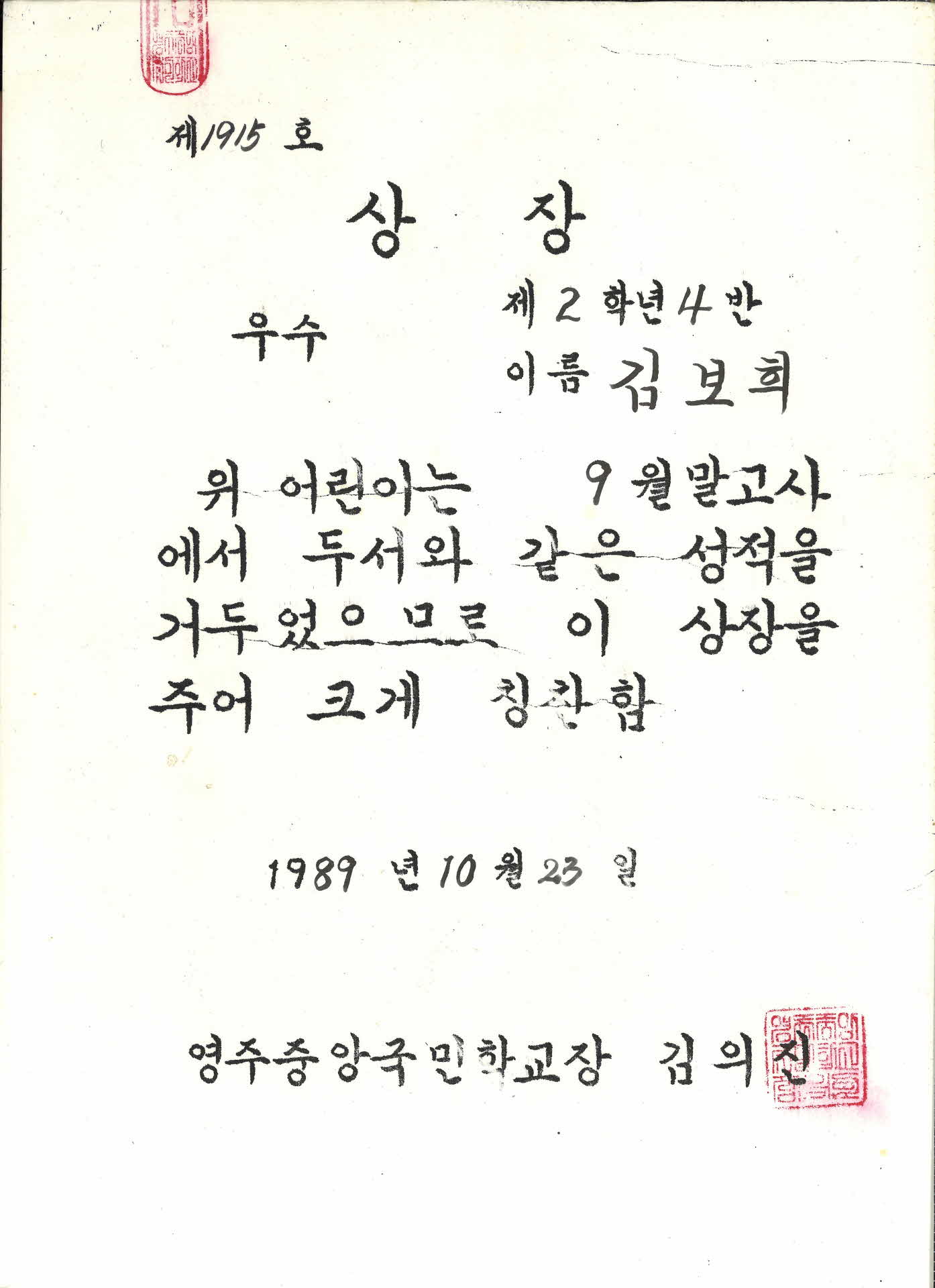 9월말고사 우수성적