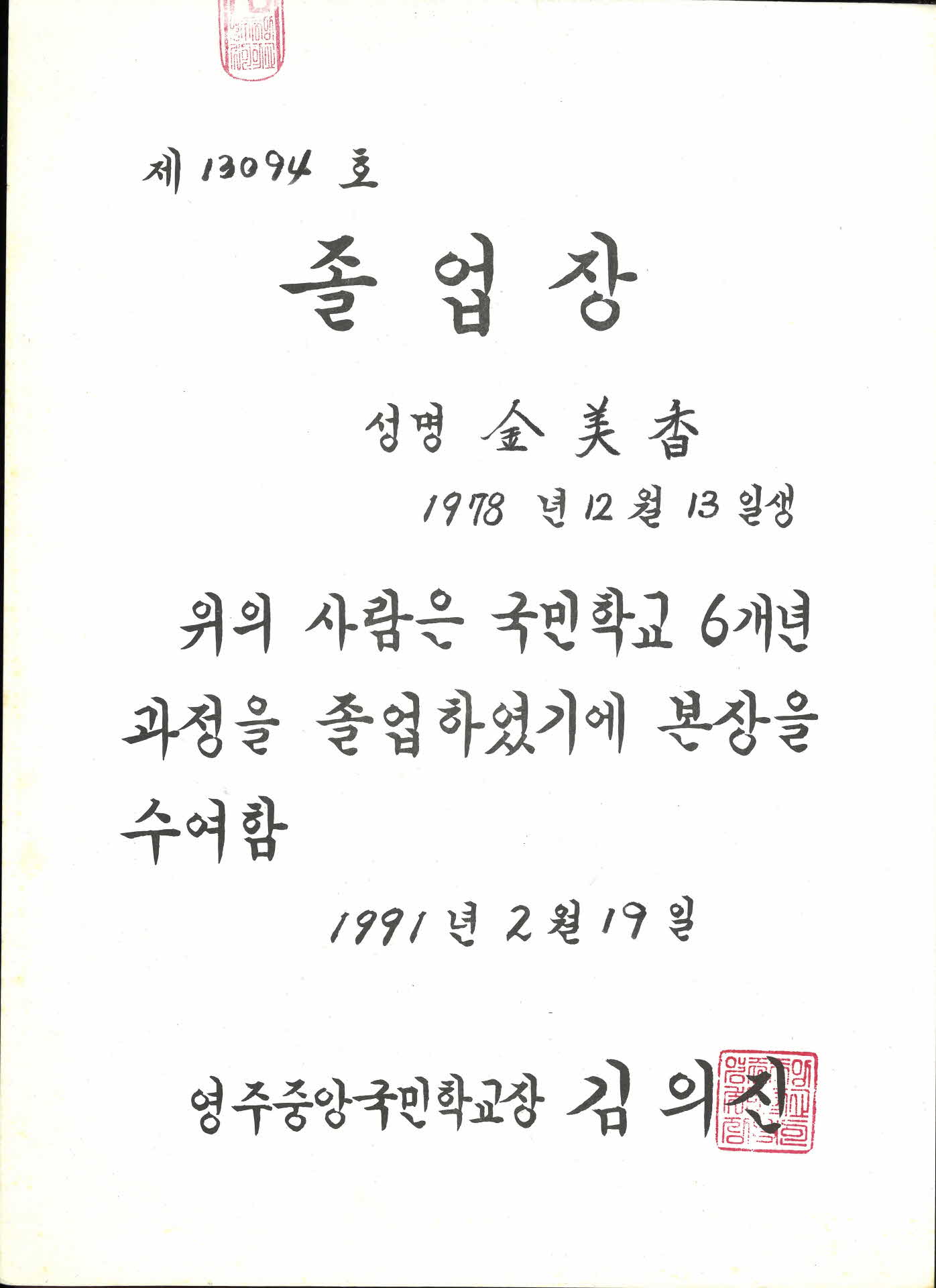 | 기록물명 | 졸업장 | ||