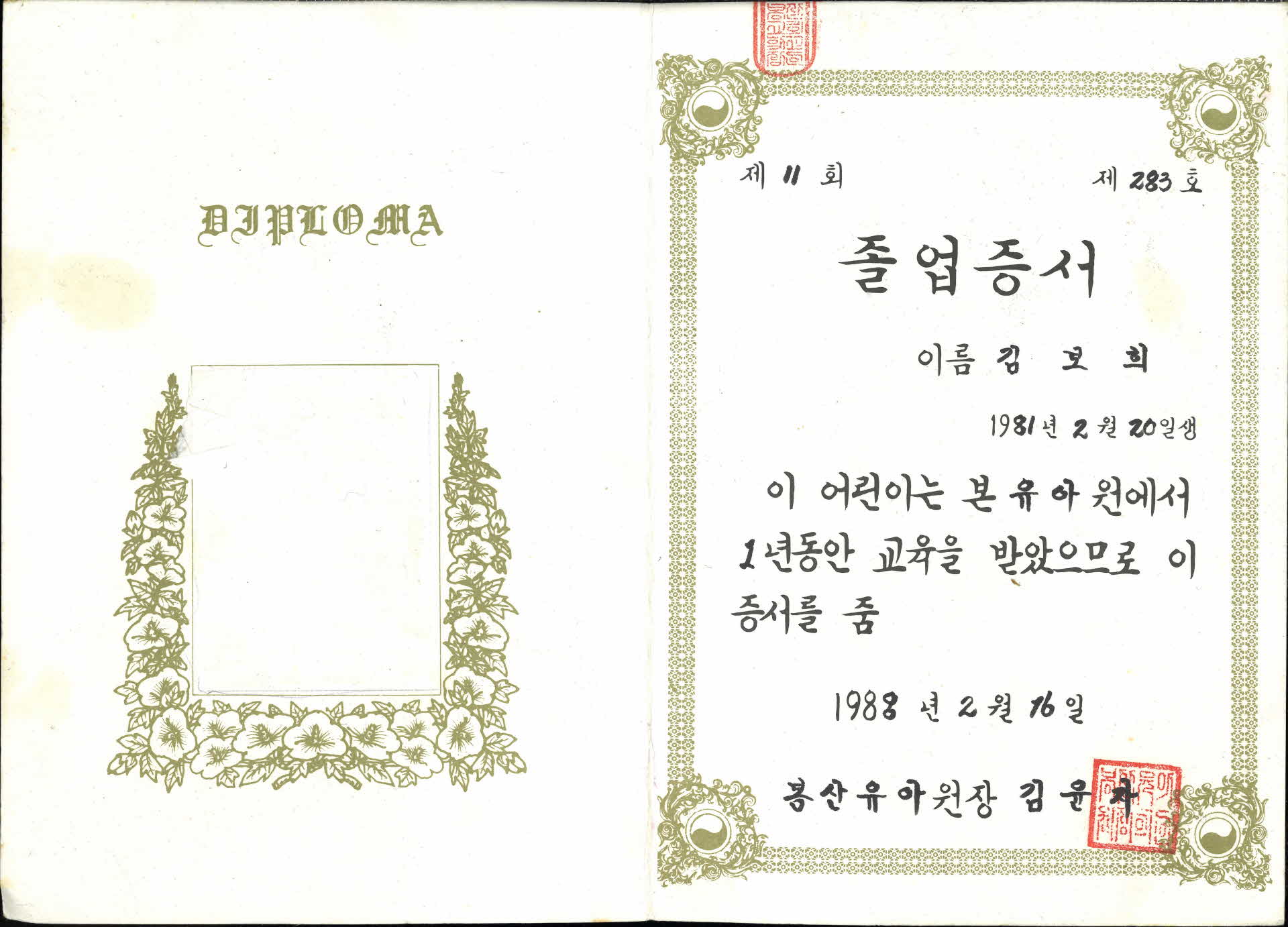 | 기록물명 | 졸업증서 | ||