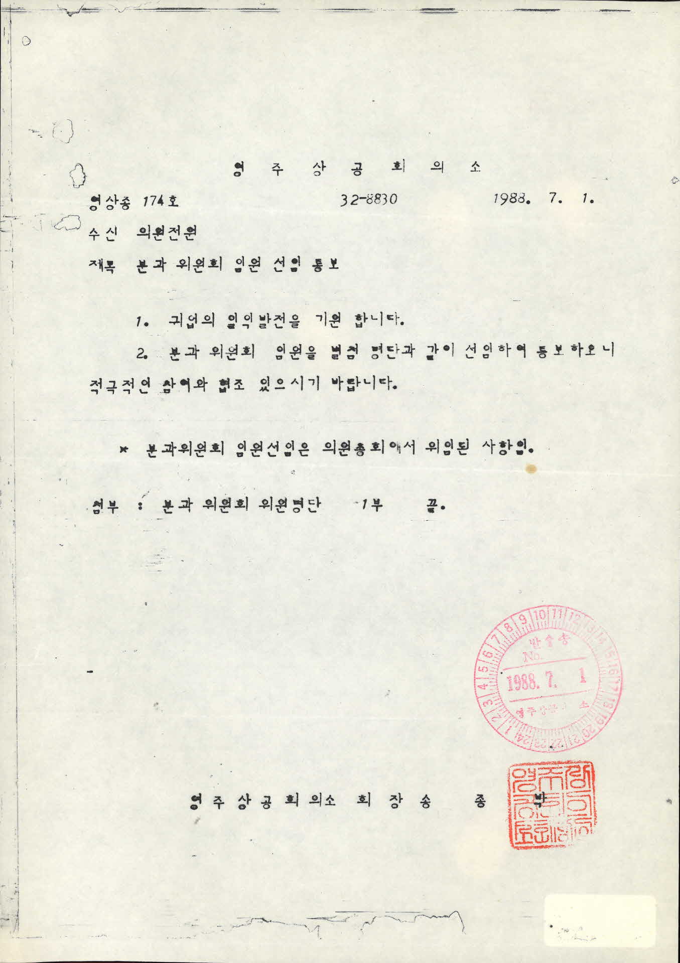 | 기록물명 | 분과 위원회 임원 선임 통보 | ||