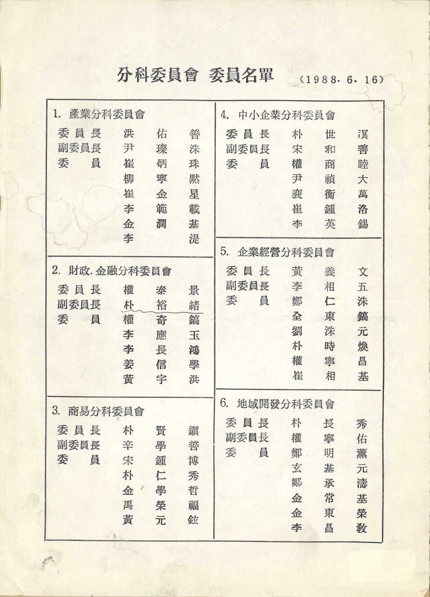 | 기록물명 | 분과 위원회 위원명부 | ||