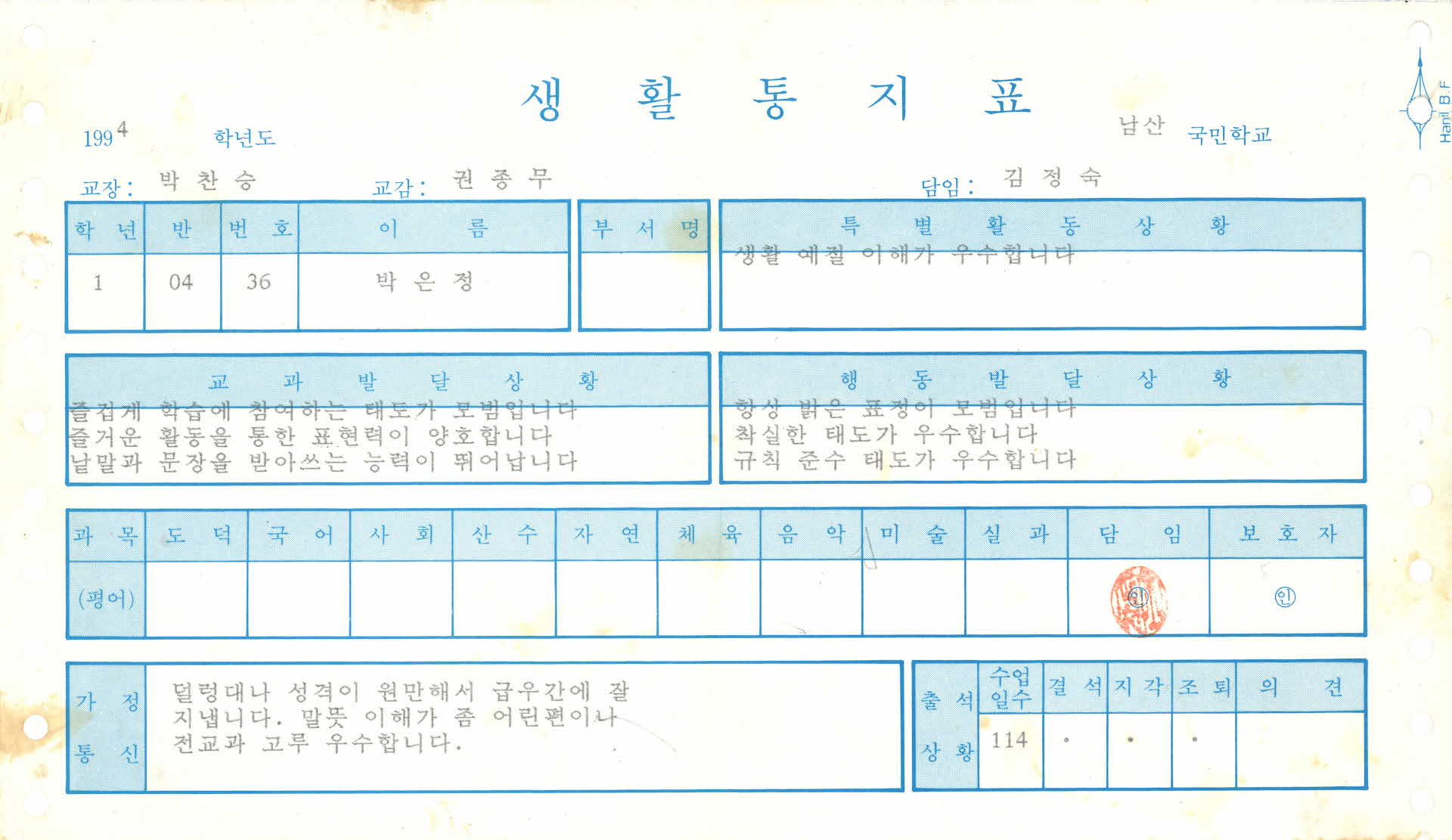 1994학년도 2학기 생활통지서 > 영주, 영주사람