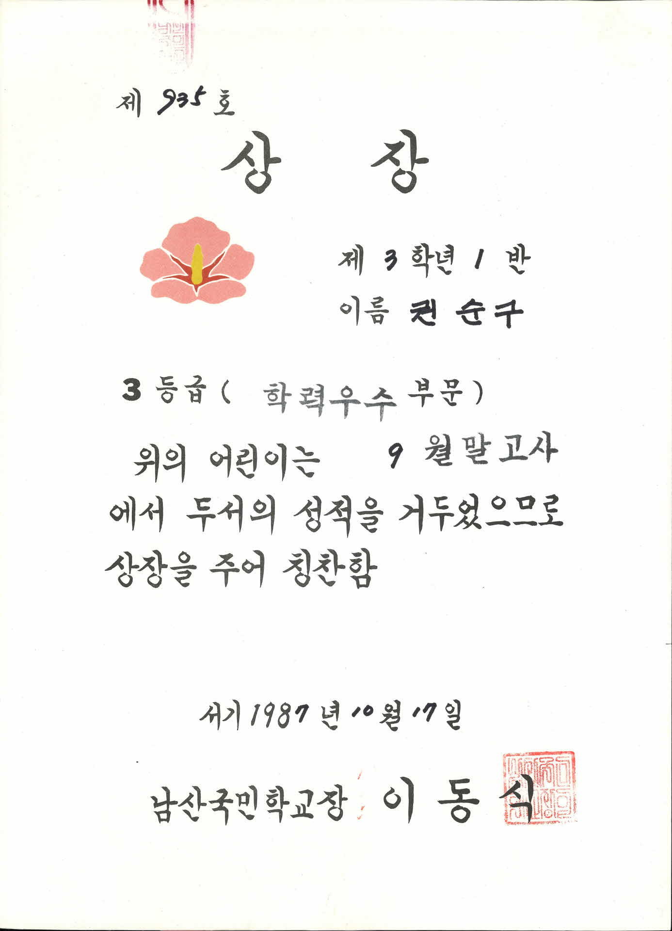 | 기록물명 | 제 935호 학력우수 상장 | ||