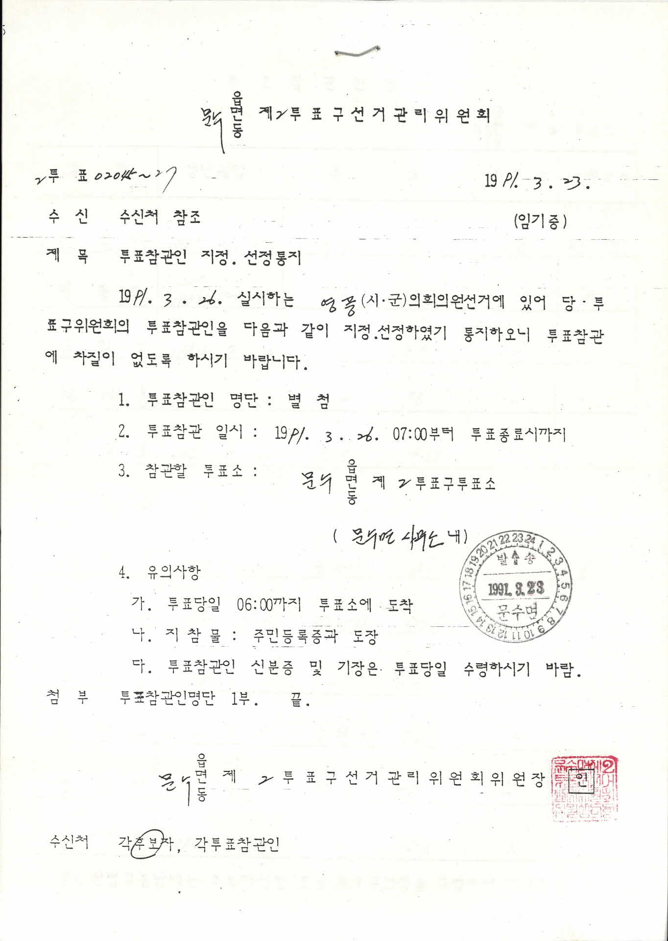 | 기록물명 | 문수면 제2투표구선거관리위원회 | ||