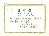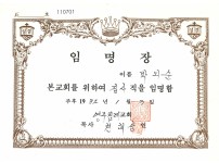 영주 침례교회 집사 임명장