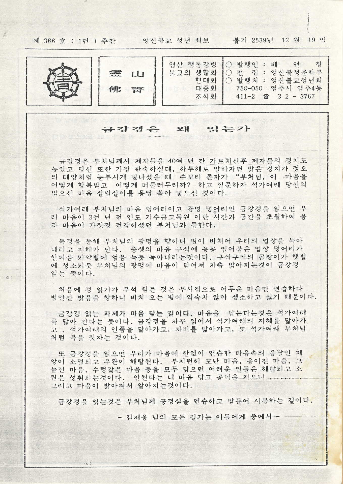 | 기록물명 | 영산불교청년회 영산법보 제366호 | ||