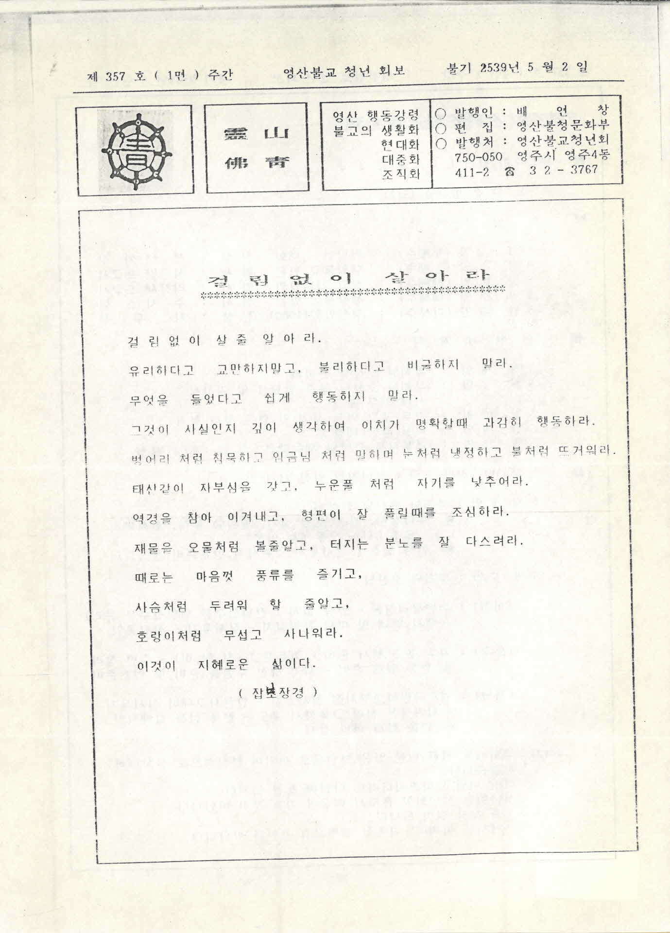 | 기록물명 | 영산불교청년회 영산법보 제357호 | ||