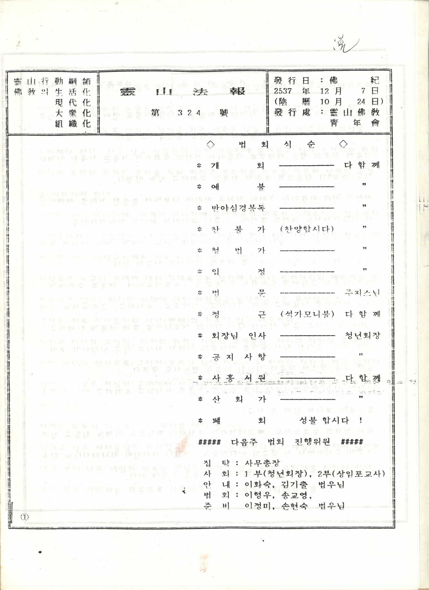 | 기록물명 | 영산불교청년회 영산법보 제324호 | ||