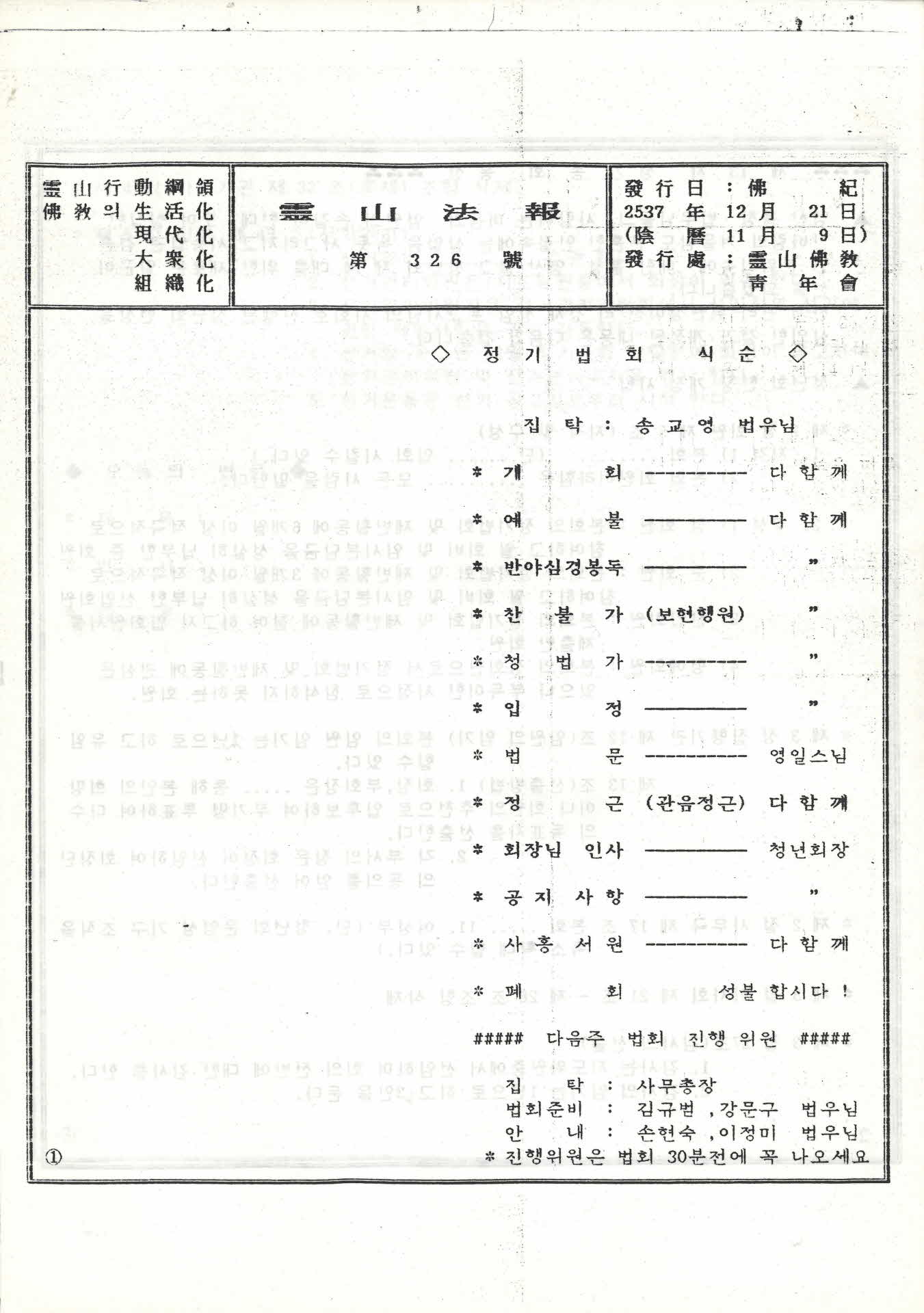 | 기록물명 | 영산불교청년회 영산법보 제326호 | ||