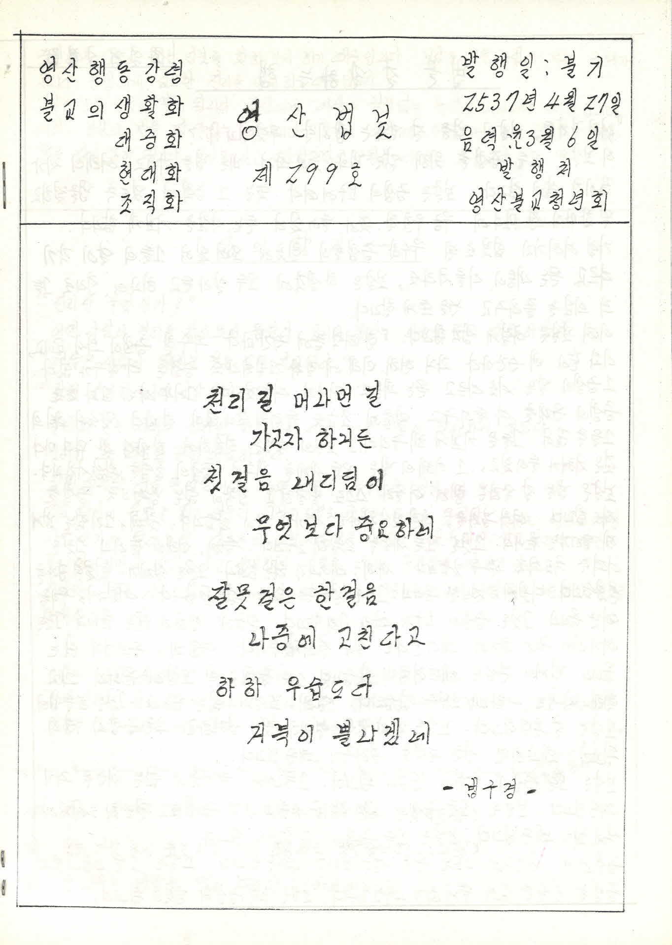 | 기록물명 | 영산불교청년회 영산법보 제299호 | ||