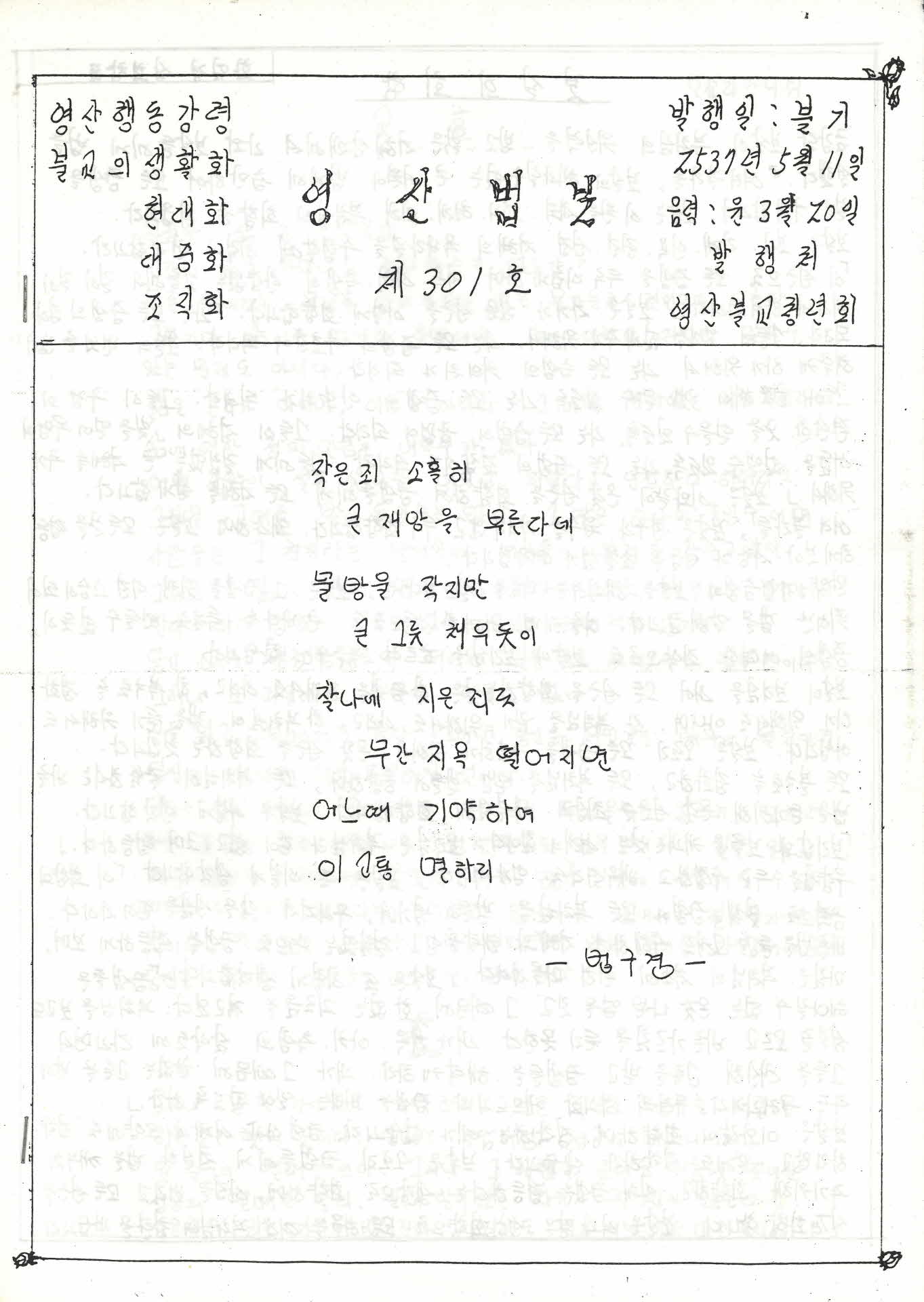 | 기록물명 | 영산불교청년회 영산법보 제301호 | ||