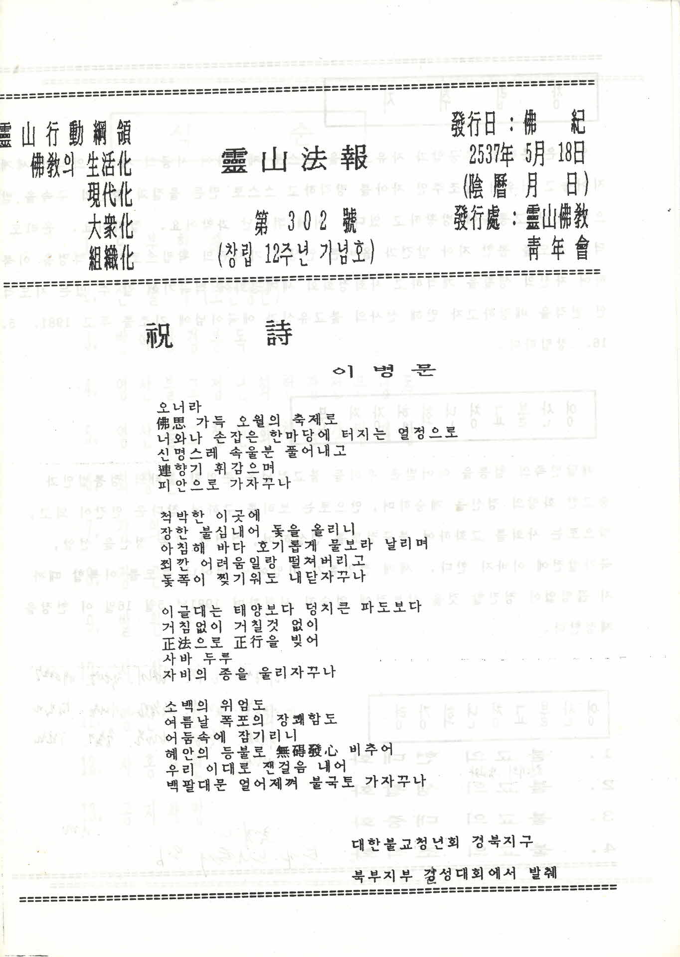 | 기록물명 | 영산불교청년회 영산법보 제302호 | ||
