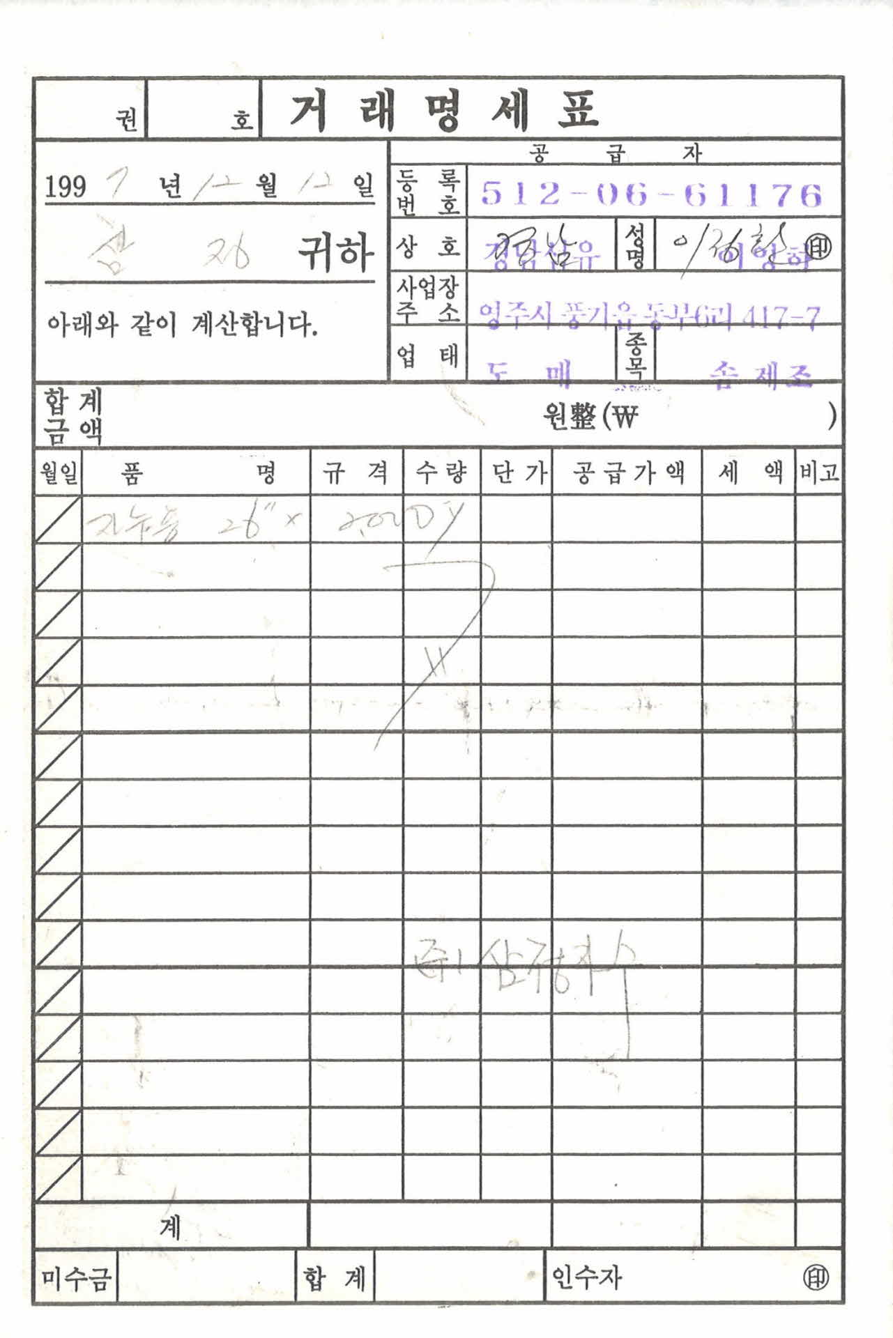 경남섬유 거래명세표