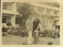 학교 교사 앞에서