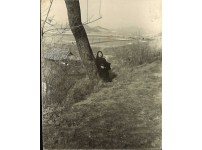 위령비에 앉아