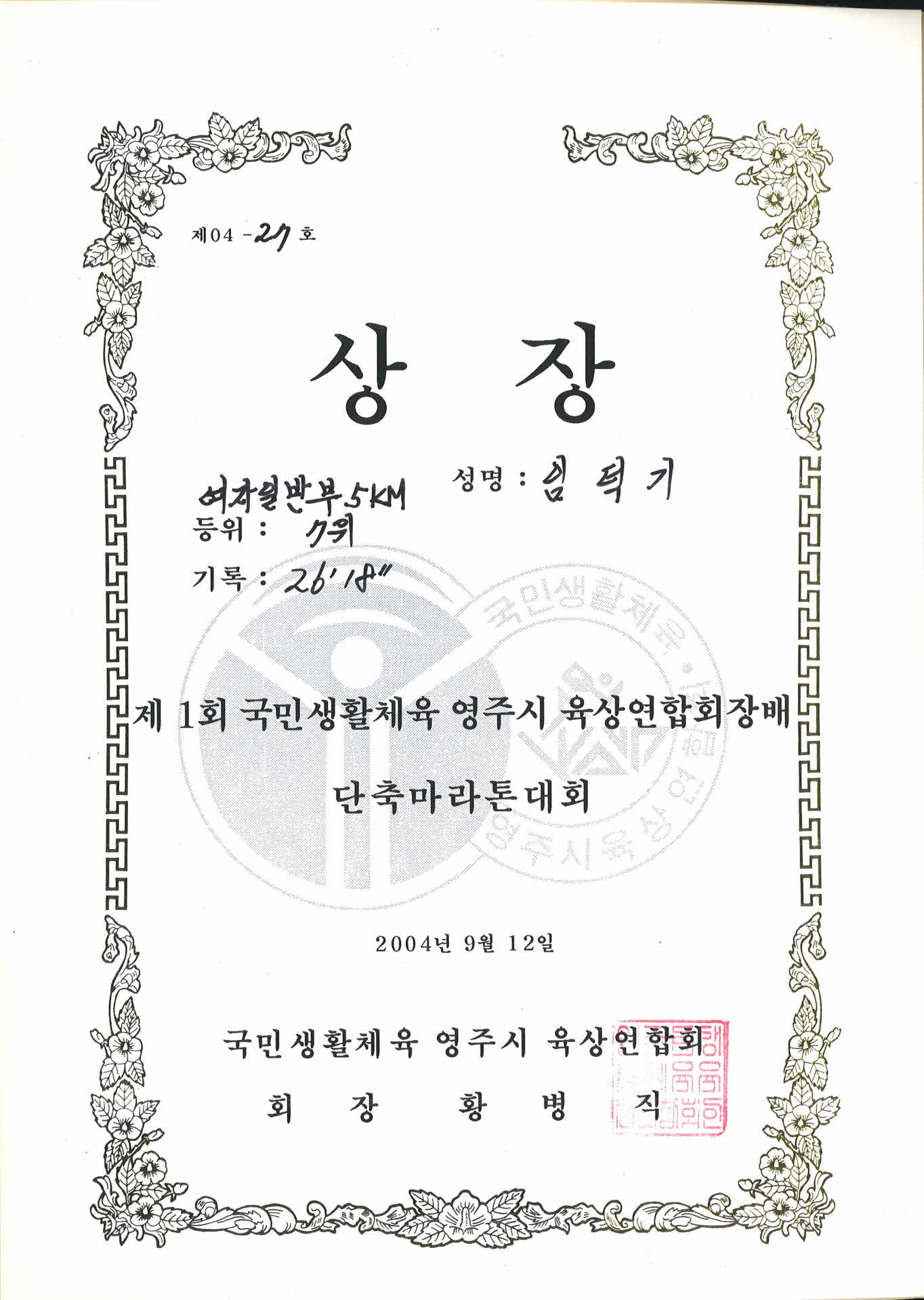 | 기록물명 | 상장 여자일반부 5KM 임덕기 | ||