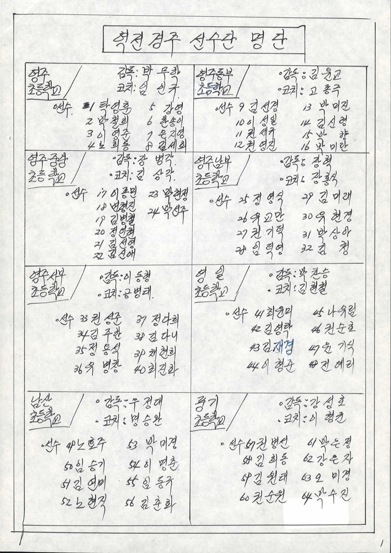 역전경주 선수단 명단 초등부 > 영주, 영주사람