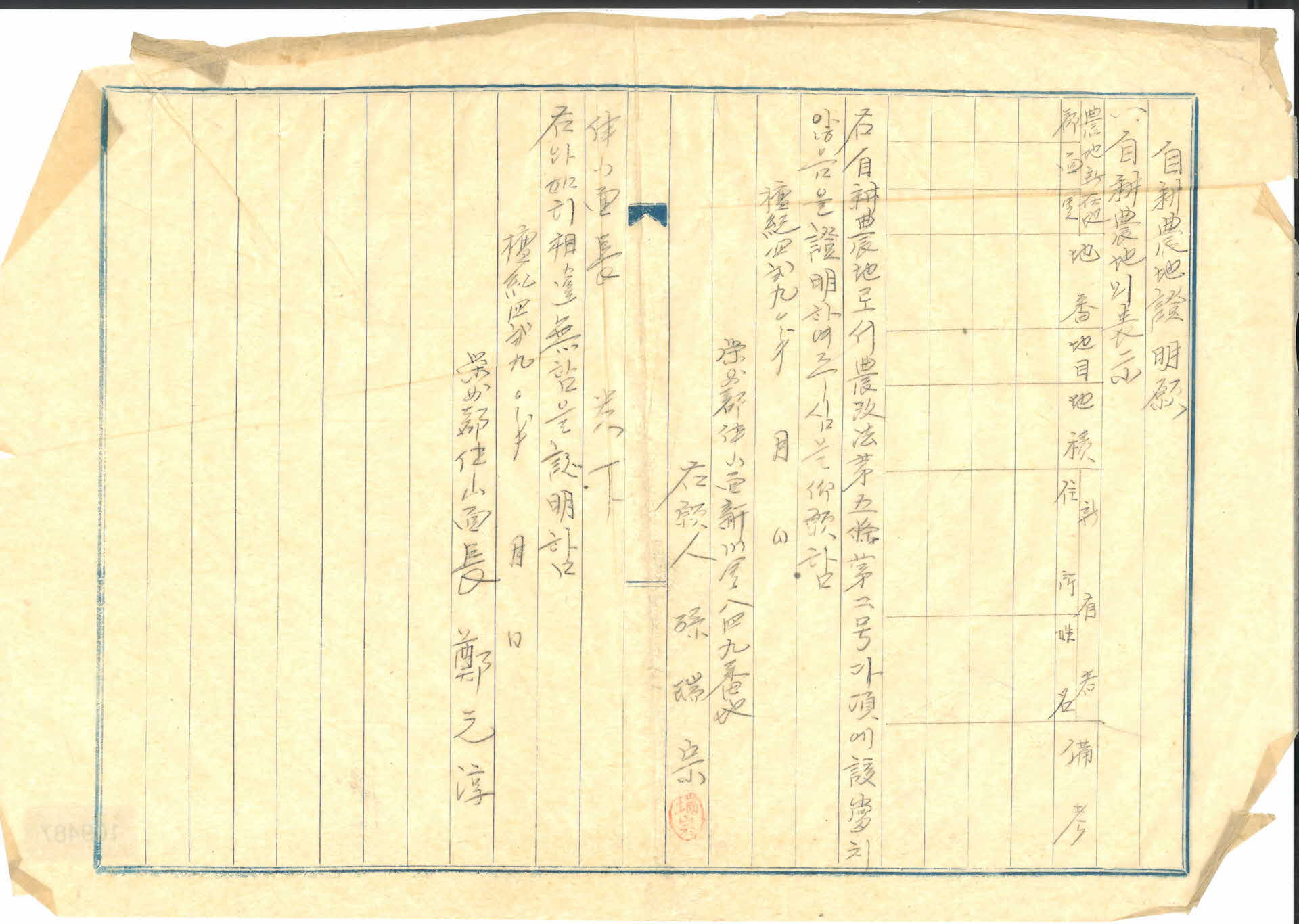 | 기록물명 | 자경농지증명원(영주군 이산면) | ||
