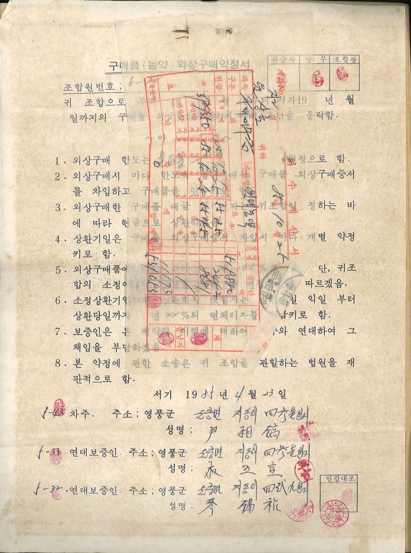 | 기록물명 | 구매품(농약)외상구매약정서 | ||