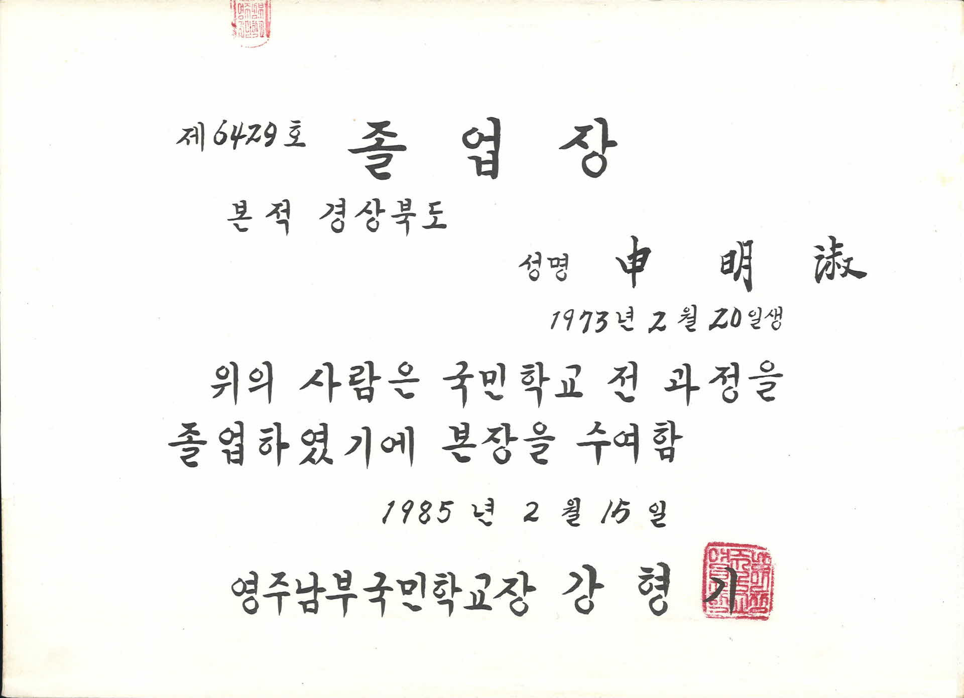 영주남부국민학교 졸업장 > 영주, 영주사람