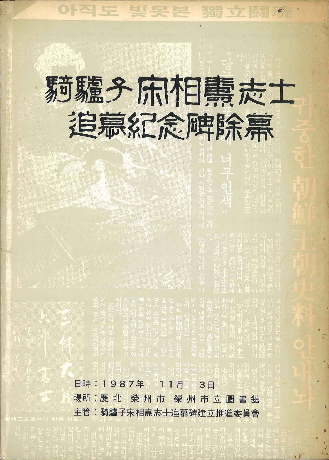 | 기록물명 | 1987년 송상수지사 추모기념비제막식 행사 안내 팜프렛 | ||