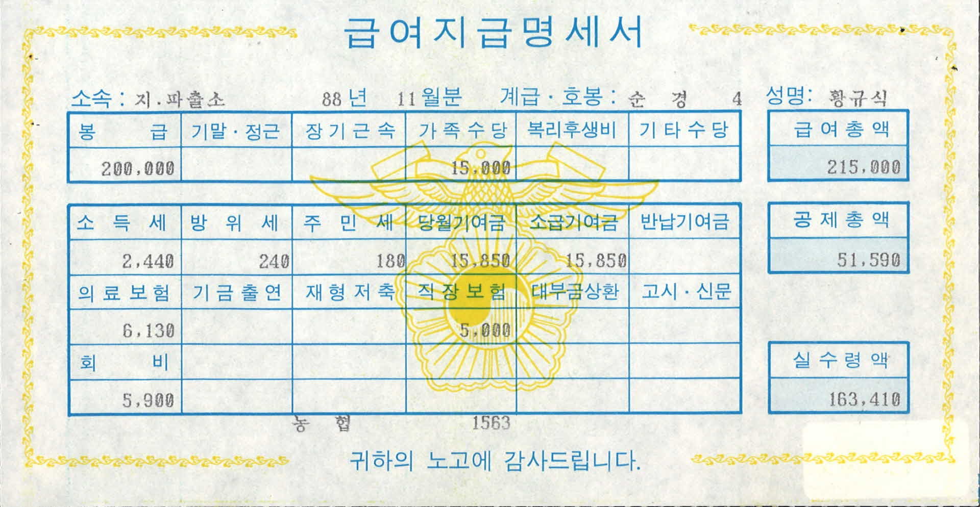 1988년 11월분 순경 급여명세서 > 영주, 영주사람