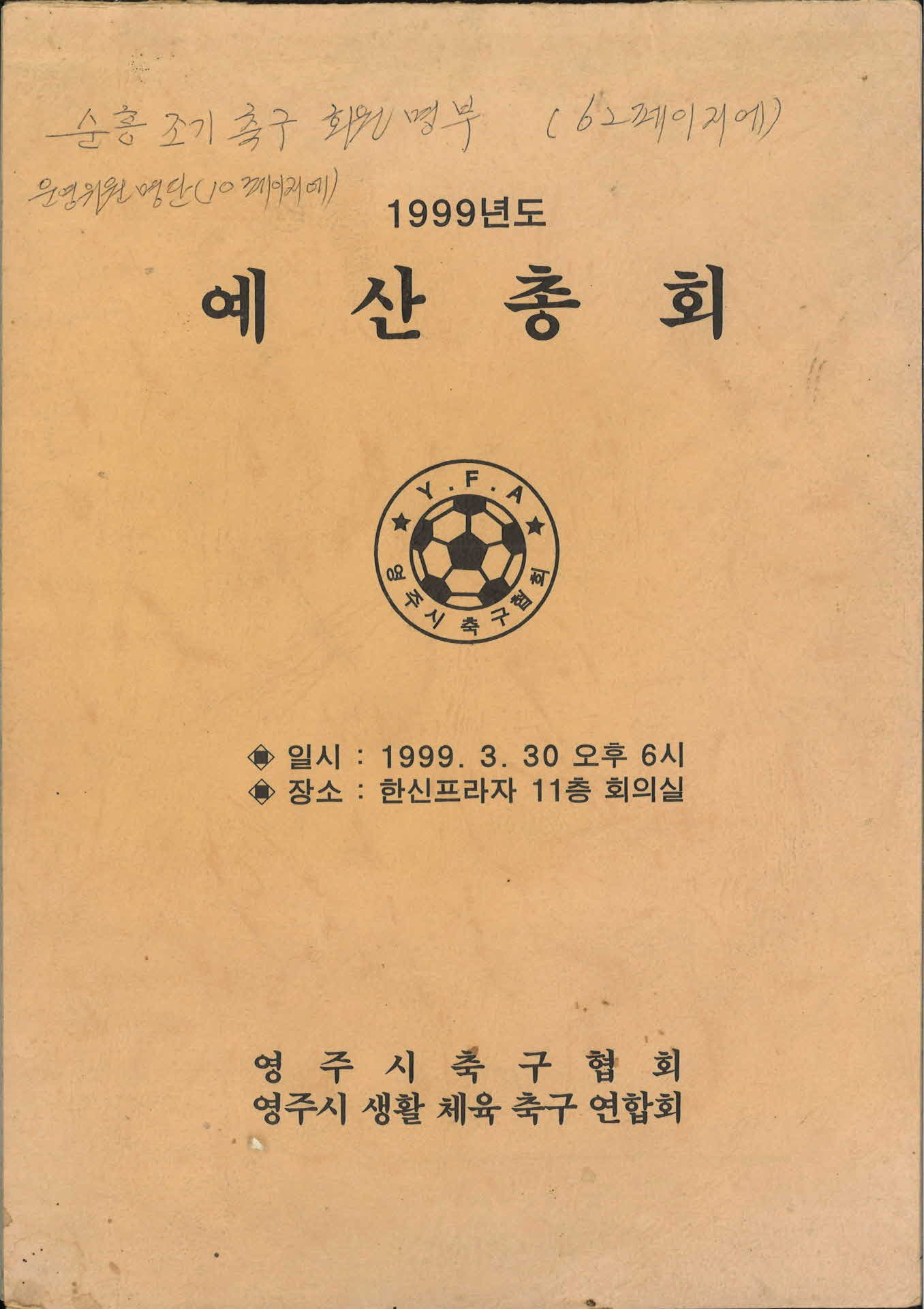 • 1999년 영주시축구협회, 생활축구협회 예산총회 회보