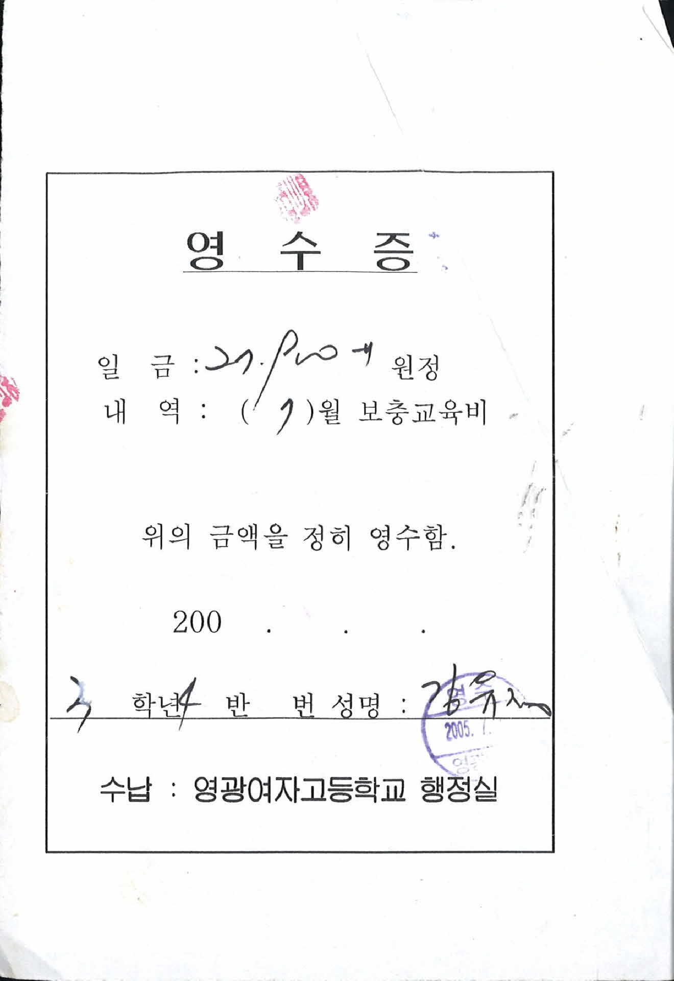 영광여고 보충교육비 영수증 > 영주, 영주사람