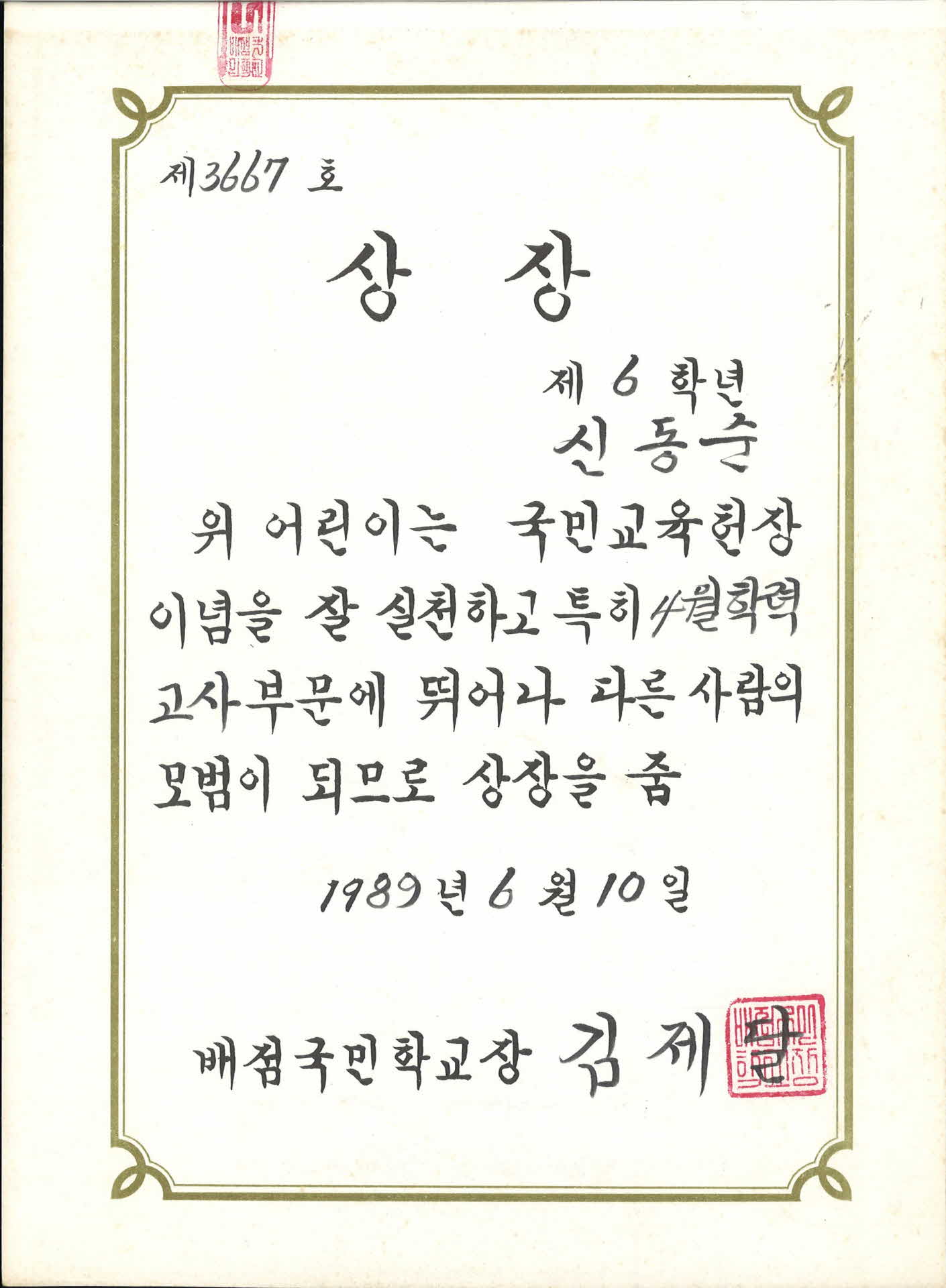 | 기록물명 | 1989년도 배점국민학교 상장 | ||