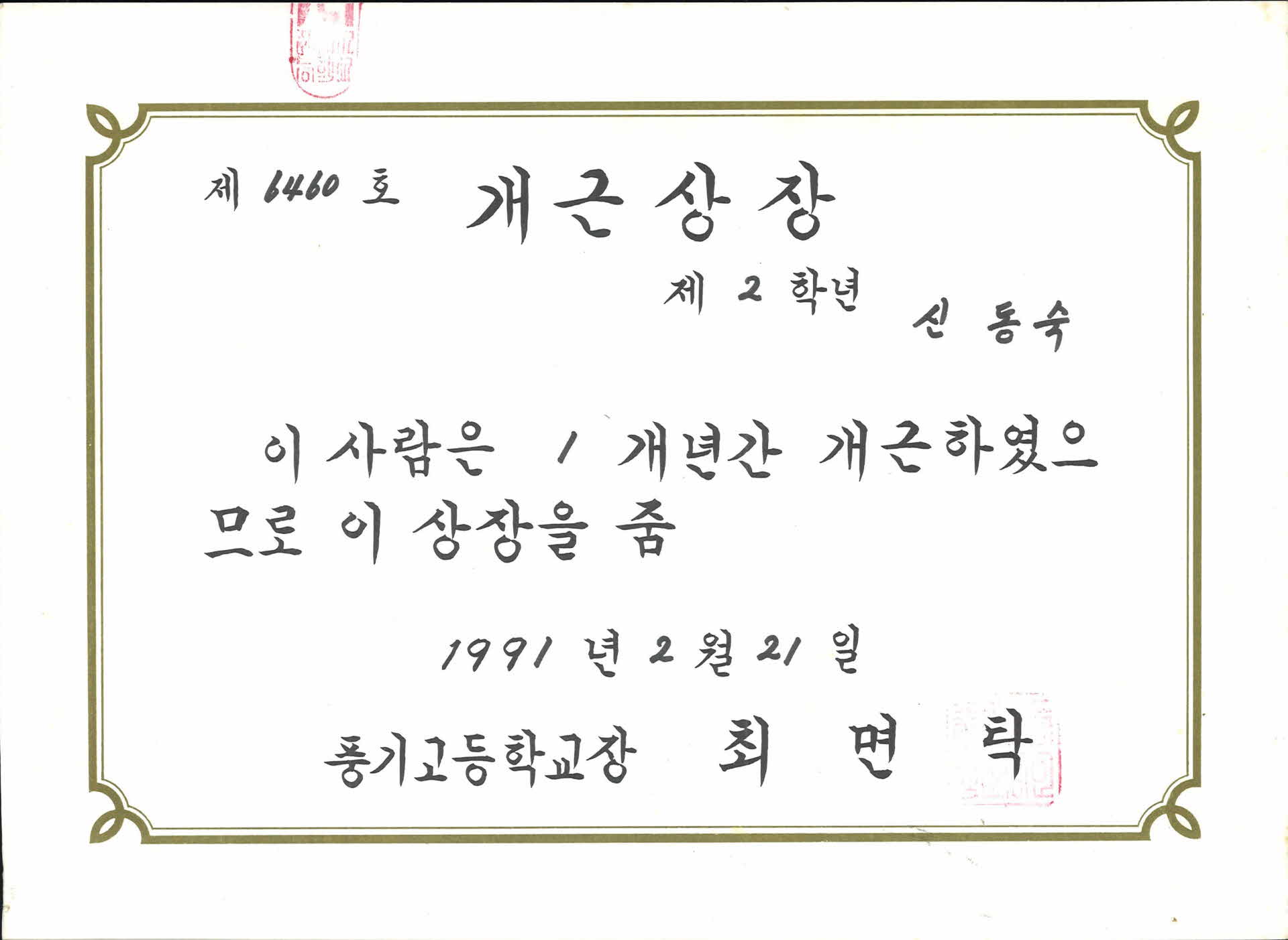 | 기록물명 | 1991년도 풍기고등학교 상장 | ||